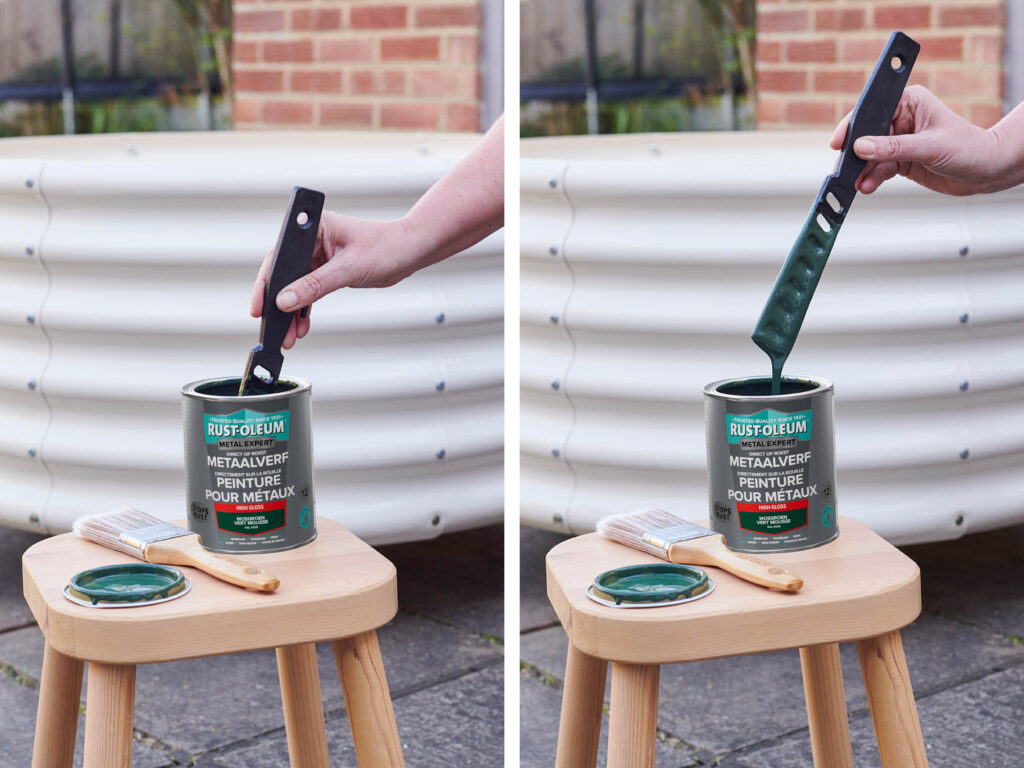 En klaar! Rust-Oleum Metal Expert watergedragen verf frist plantenbakken en andere tuinaccessoires meteen op. De verf is speciaal ontwikkeld om zware weersomstandigheden te doorstaan en is tot wel 12 jaar* bestand tegen barsten, afbladderen en blaasvorming, dankzij de ultraduurzame formule die water afstoot. Perfect voor een make-over buiten die lang mooi blijft, weer of geen weer.