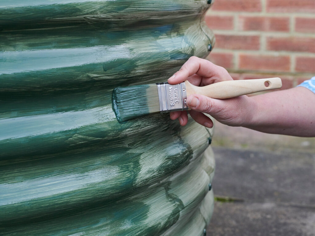 Breng de Rust-Oleum Metal Expert watergedragen verf aan met een geschikte kwast of verfroller. Een roller werkt goed voor grotere vlakken, zoals de zijkanten van de plantenbak, terwijl een kwast ideaal is voor kleinere zones, versieringen of details.