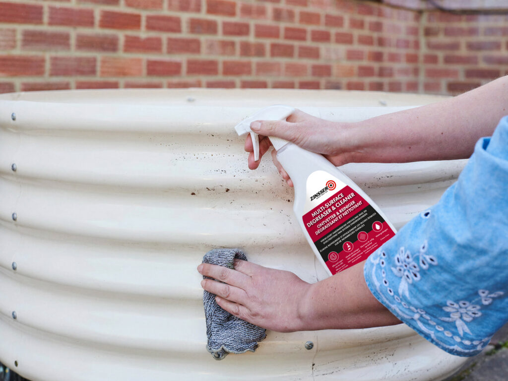 Verwijder losse verf of roest door de plantenbak te schrapen en met een staalborstel te behandelen, of door te schuren. Zodra je zeker weet dat het oppervlak glad is, reinig je de plantenbak grondig met Ontvetter en reiniger. Zo verwijder je vuil, stof en andere verontreinigingen. Neem daarna af met een vochtige doek en laat goed drogen.