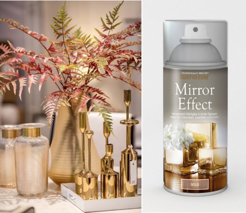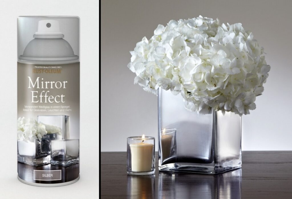 Soms heb je maar een klein trucje nodig om van een oud decoratiestuk iets bijzonders te maken. Het is bovendien heel eenvoudig: spuit de verf op de achterkant van een transparant glazen object, bijvoorbeeld een vaas, schaal of windlicht. Zodra de verf droog is, ontstaat aan de binnenkant een realistisch spiegeleffect dat zachtjes door het glas heen straalt. Het resultaat is een elegante, subtiel glanzende look die meteen indruk maakt.